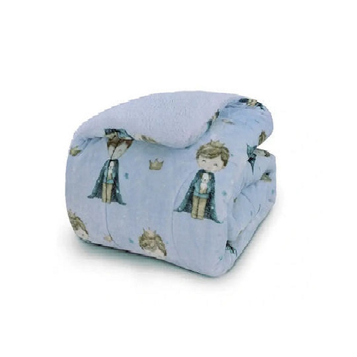 Κουβερτοπάπλωμα μονό φλάνελ, 100% πολυέστερ, εμπριμέ, πετρόλ, σχέδιο πρίγκιπας, με επένδυση προβατάκι sherpa