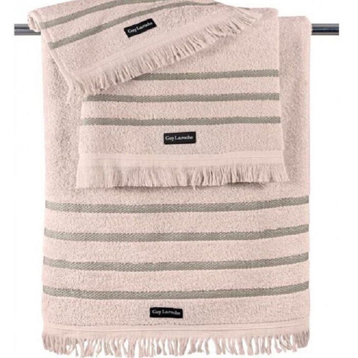 Σετ πετσέτες μπάνιου αποτελούμενο από μία πετσέτα χεριών 30×50εκ., μία πετσέτα προσώπου 50×90εκ. και μία πετσέτα μπάνιου 70×140εκ. Σετ 3τμχ πετσέτες μπάνιου μαλακές και απορροφητικές, κατασκευασμένες από 100% βαμβάκι με την υπογραφή της Guy Laroche Paris. Ιδανική επιλογή για ένα ολοκληρωμένο σετ μπάνιου.