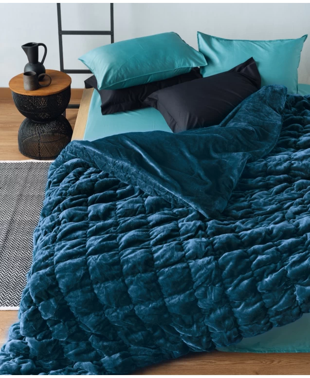 Κουβερτοπάπλωμα δύο όψεων, η μία από πολύ μαλακό ύφασμα fleece, mink velvet βελούδινης αίσθησης από 100% polyester flannel fleece βάρους 220gr/m² και ή άλλη από 100% polyester velour ,με γέμισμα από υποαλλεργικό υλικό 3D hollowfiber. Είναι πολύ ζεστό, μεγάλης αντοχής και εύκολο στη χρήση. Κατάλληλο για Μεσογειακό χειμώνα.. Ενδείκνυται Πλύσιμο στους 40°C.