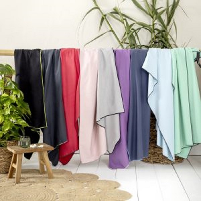 Πετσέτα θαλάσσης με σύνθεση 100% microfiber. Μια εξαιρετικά ελαφριά και απορροφητική πετσέτα για την παραλία με επεξεργασία Quick Dry για να στεγνώνει γρήγορα. Το χαρακτηριστικό του υφάσματός της από microfiber είναι ότι έχει πολύ πυκνή ύφανση που αποτελείται από εξαιρετικά λεπτά νήματα που είναι ίσα ή λεπτότερα του ενός denier. Χάρη σε αυτή την ιδιαίτερη ύφανση έχει πάρα πολύ απαλή και μαλακή υφή. Επιπλέον, έχει μεγάλη αντοχή στις συχνές πλύσεις και καθαρίζει εύκολα, χωρίς να απαιτεί ειδική φροντίδα.